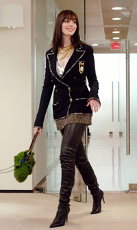 Rebecca taylor大衣和christian louboutin的靴子,同色的帽子和同色的靴子搭配的真不错,Patricia Field(《穿Prada的女魔头》服装指导)居然找到和这种靴子搭配的毛线帽子,不轻易哟。