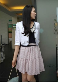 在有时早晚的温度还是有一定的差距,雪纺的连衣裙展现出OL的美丽气味,加上粉嫩颜色的配色和年轻感的设计,都是让严厉的办公室增多些活力的好设计,腰间的桃心造型腰带更是加进更多的甜蜜感,而搭配在外面的小外套,更是贴合连衣裙的整体气质,让春夏更加活泼俏丽。